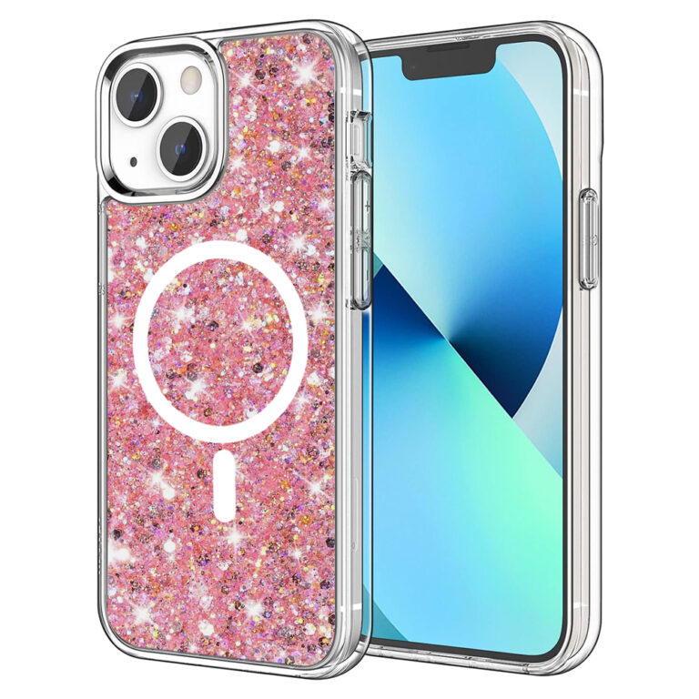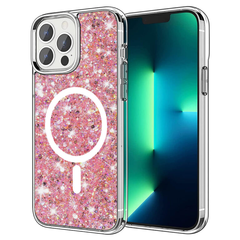 Techsuit Kimalteleva Glitter MagSafe suojakuori, iPhone 13 Pro – Pinkki
