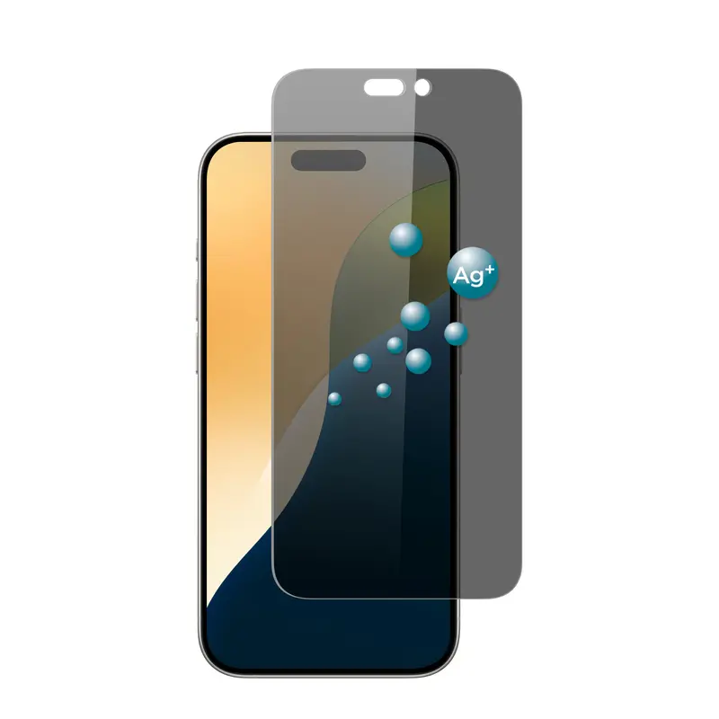 Privacy-lasi estää näytön näkymisen ulkopuolisille 360 astetta, ja siinä on antibakteerinen pinnoite, joka hylkii jopa 99,9 % yleisimmistä bakteereista. Suojalasi kiinnittyy kokonaan puhelimen näyttöön staattisella silikonikiinnityksellä, vaikuttamatta näytön kosketusherkkyyteen.